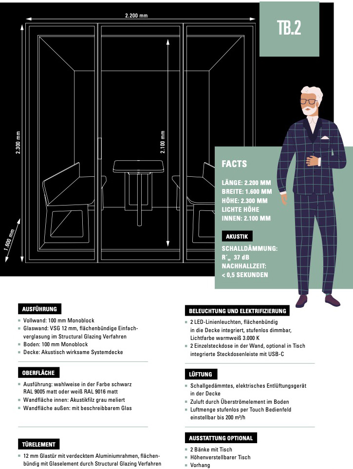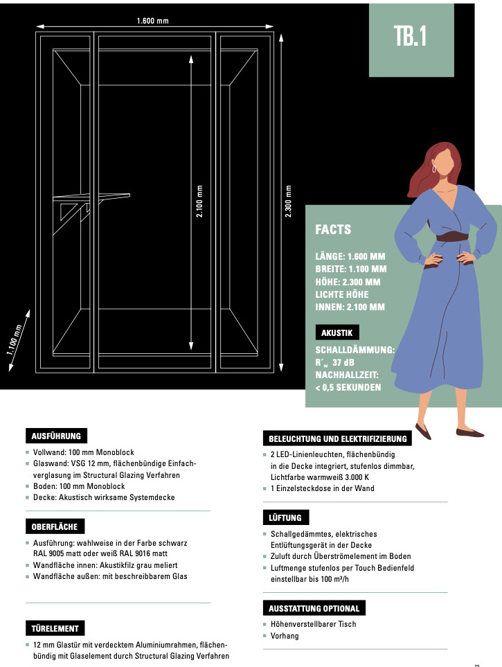 Für Telefonate, Fokusarbeit, Besprechungen oder Brainstormings bietet die Teambox genau die richtige Umgebung. Hier können Videokonferenzen ohne Ablenkung und Störgeräusche von außen stattfinden.